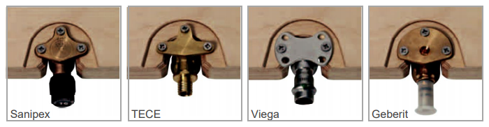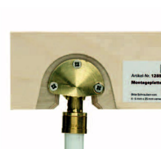 O metodă rapidă, fiabilă de montare a robinetelor cu ventile de colț și a coturilor de structuri de perete cu știfturi. Montarea fitingurilor cu orificii standard de 80, 100 sau 153 mm.