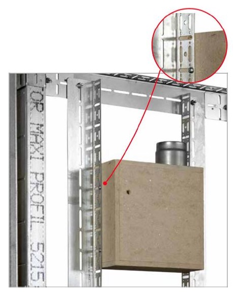 Șina L TraFLEX LEIFELD se poate monta rapid și ușor pe verticală între două Șine în L montate pe orizontală (utilizând șuruburi standard pentru tablă sau șuruburi/piulițe de 6 mm). Prin această metodă accesoriile se pot monta cu precizie pe întreaga lungime și lățime a structurii peretelui.