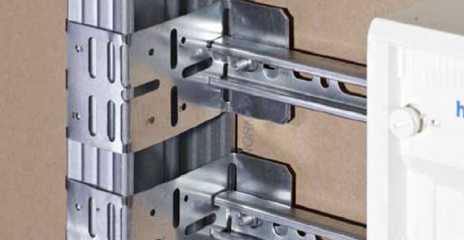 Utilizați Șina L TraFLEX LEIFELD de 1140 mm sau de 570 mm pentru o și mai mare flexibilitate. Fixați pe înălțime între doi montanți utilizând două șine corespunzătoare. Șina L TraFLEX LEIFELD de 570 mm este potrivită pentru structuri de perete cu știfturi cu orificii verticale de la 625 mm până la 652 mm. Șina L TraFLEX LEIFELD de 1140 mm este disponibilă de asemenea, doar măsurați și tăiați la lungime utilizând foarfeca de tinichigerie.